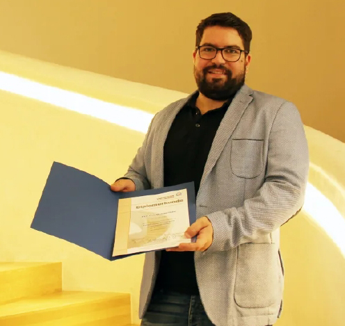 In seiner Diplomarbeit "Das Deckengemälde der Neuzeit" hat er sich mit der Farbgestaltung der Decke mit Spanndecken im Medizin- und Pflegebereich beschäftigt.