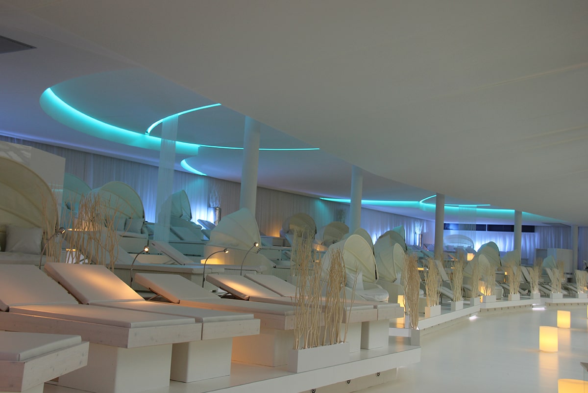 Einbau von Spanndecken und Wandbespannungen in der Therme und in der weissen Welt.