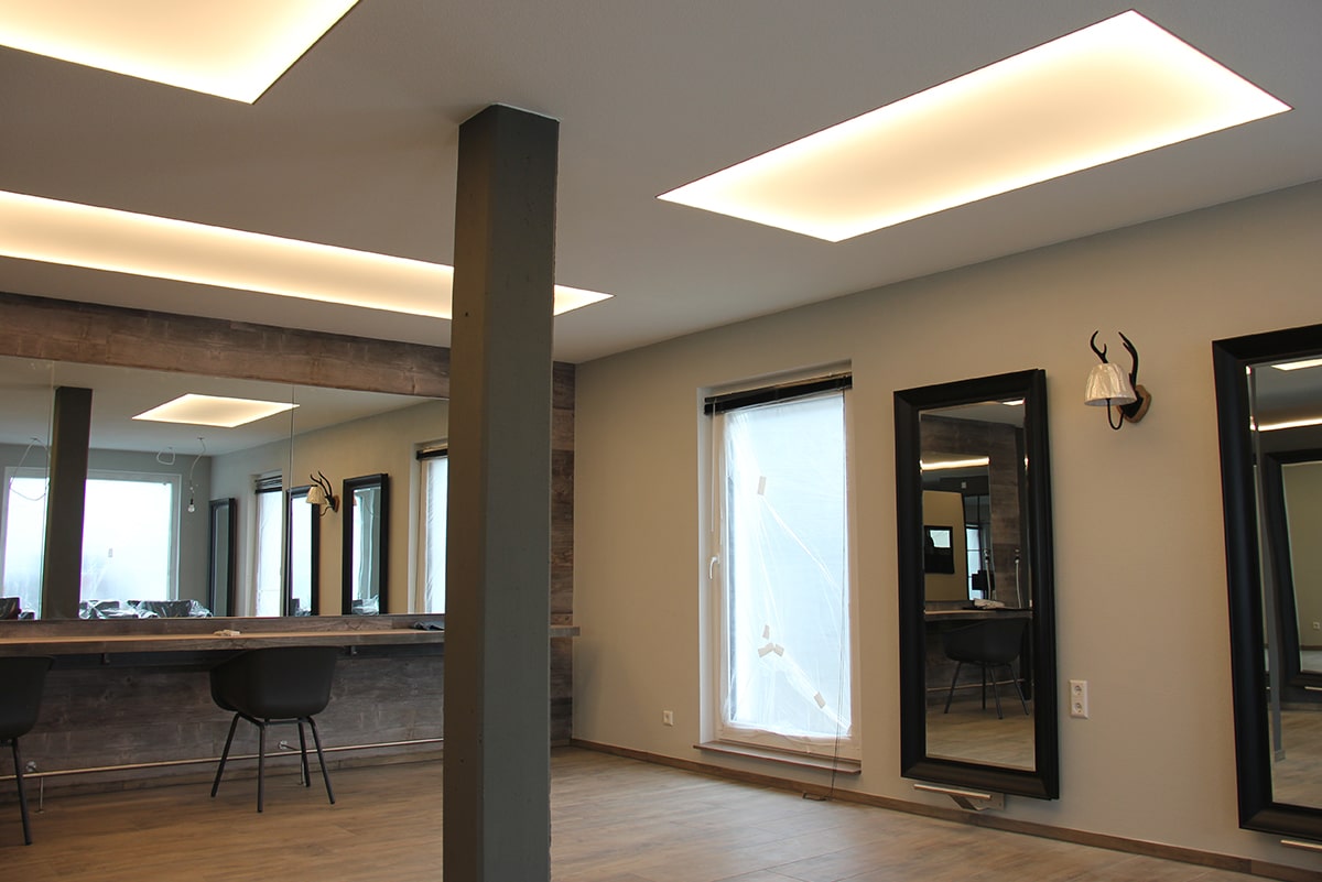 - Einbau von Lichtspanndecken und Motivspanndecken im Friseursalon