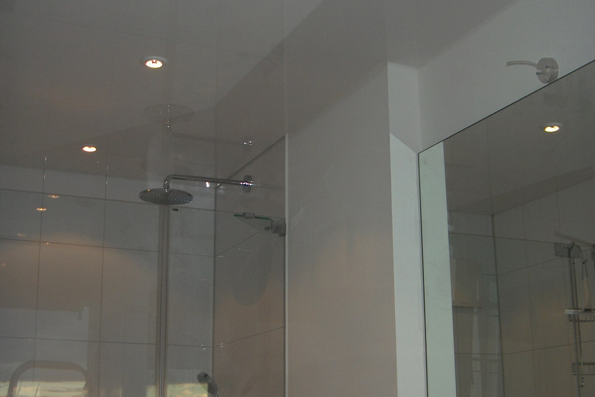 - Badgestaltung in einer Ferienwohnung mit weiß glanz Spanndecke