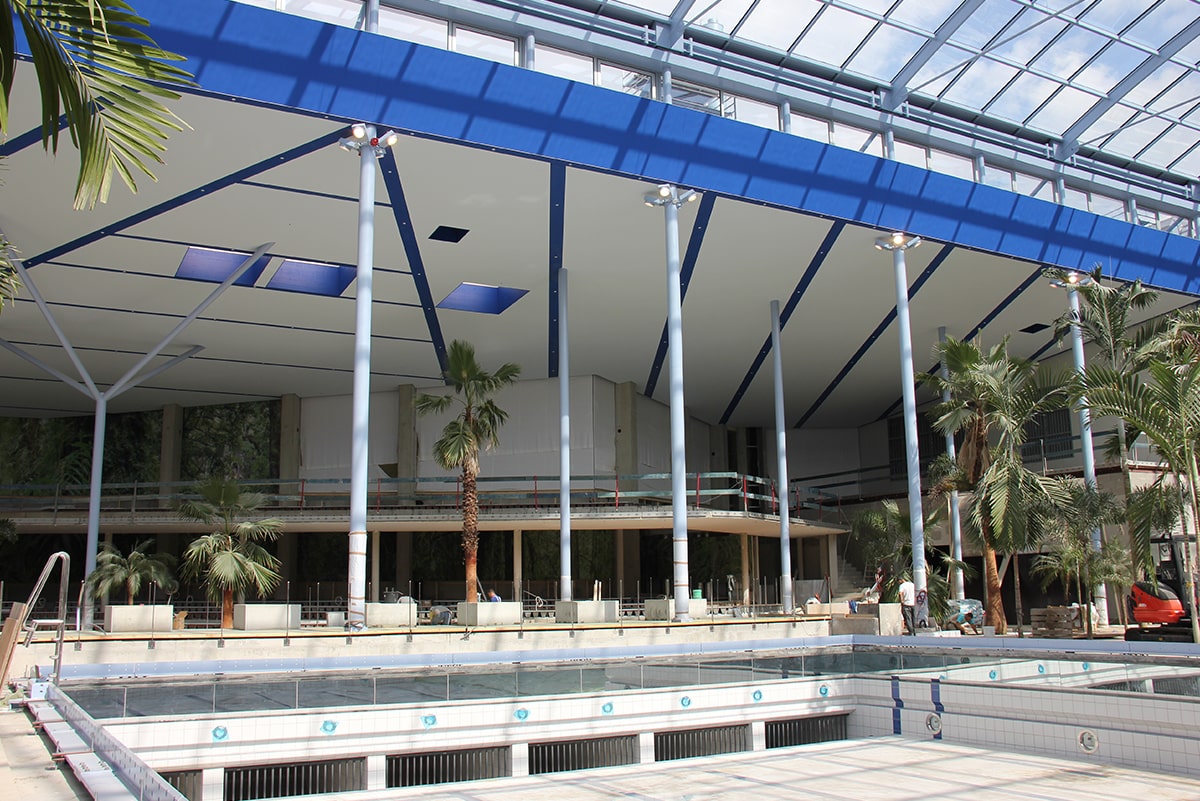 - Deckengestaltung mit Clipso-Akustikdecken im Wellenbad. Erstellung des Musterzimmers für das Hotel Victory