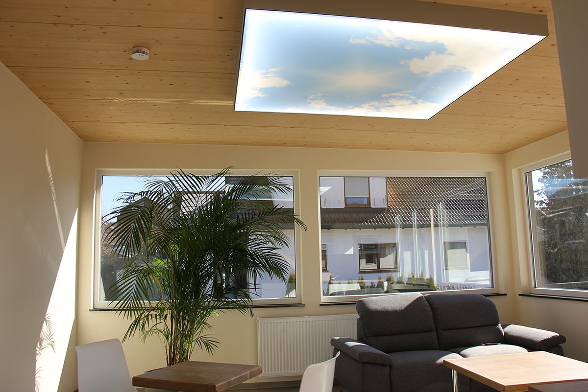 - Erstellen der Aufenthaltsräume und Gemeinschaftsräume mit Spanndecken und Lichtschienen.