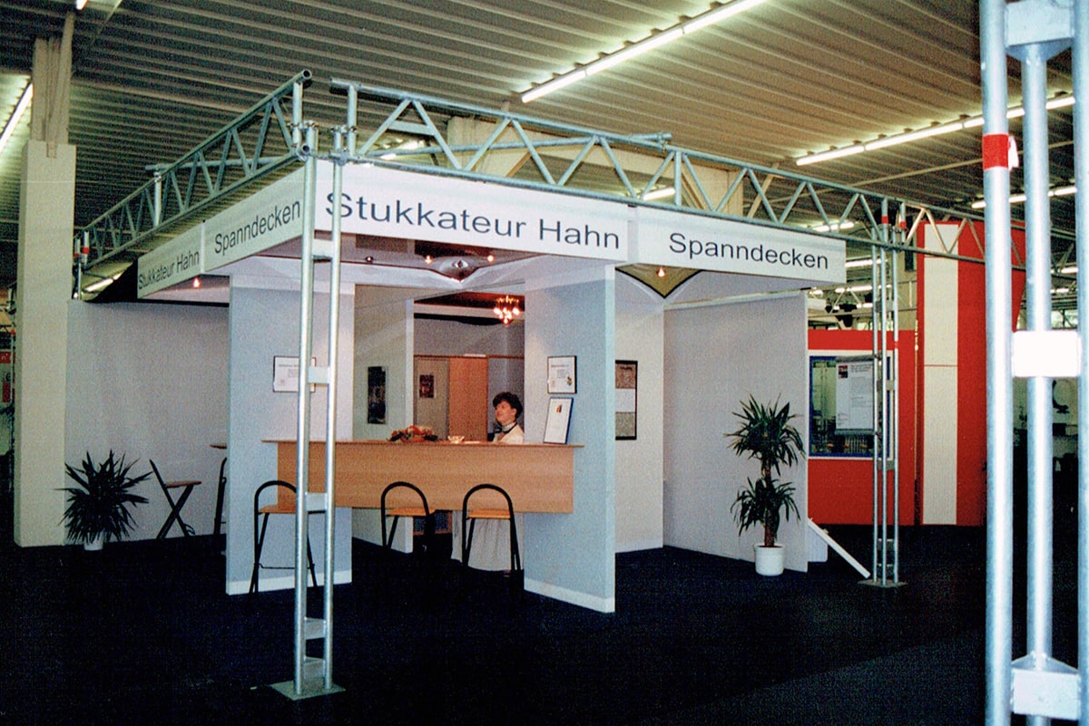 Der erste Kontakt mit dem Produkt Spanndecke entstand 1998 für den Innovationswettbewerb des Stuckateurhandwerks „Patente Talente“ in Friedrichshafen.